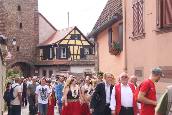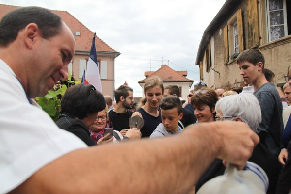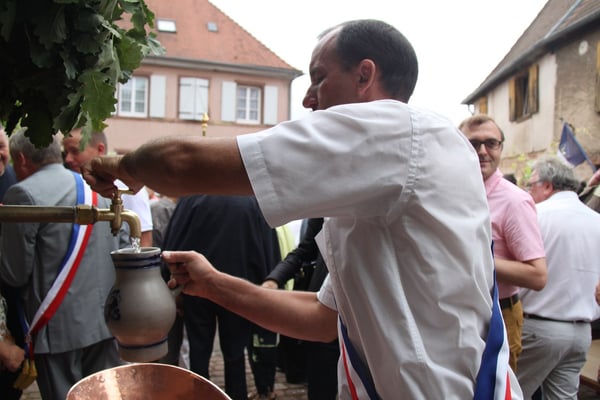 Ce jour-là, du vin coule à flot de la fontaine et la fête bat son plein dans le village !