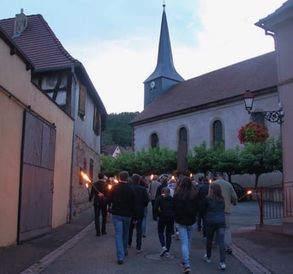 Wangen a ouvert les festivités de la Fête Nationale, mercredi 13 juillet avec son traditionnel défilé aux flambeaux au son de la Musique Harmonie et son bal populaire en plein air animé par Top Soirée dans la cour de l'école élémentaire.