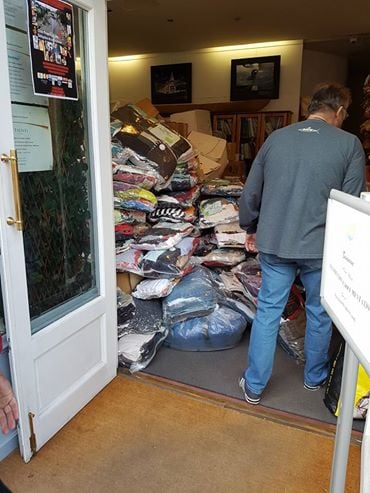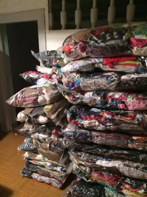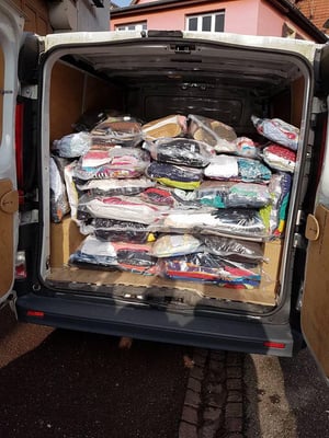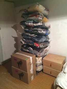 Le résultat est impressionnant :575 kg de vêtements dans 58 colis dont un maximum de housses vides d'air pour diminuer le volume.