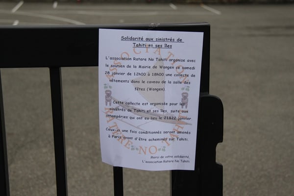 Toujours prête, même à des milliers de kilomètres,l'association  Ratere No Tahiti de Wangen se mobilise rapidement pour les sinistrés de Tahiti et ses îles.