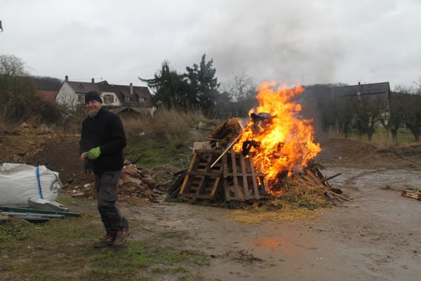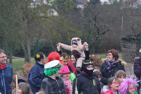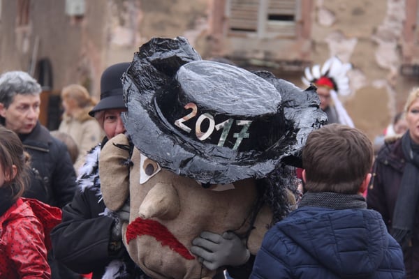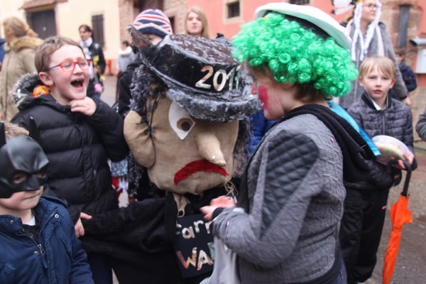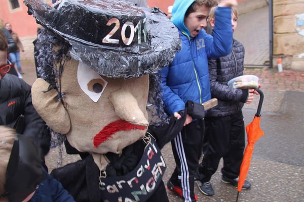 Agitant nerveusement ses bras, vêtu d'une veste noire et affligé d'un grand chapeau, le bonhomme carnaval 2017 a été conduit à la cave Strohl pour son inévitable embrasement.