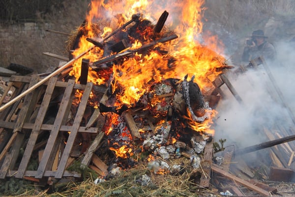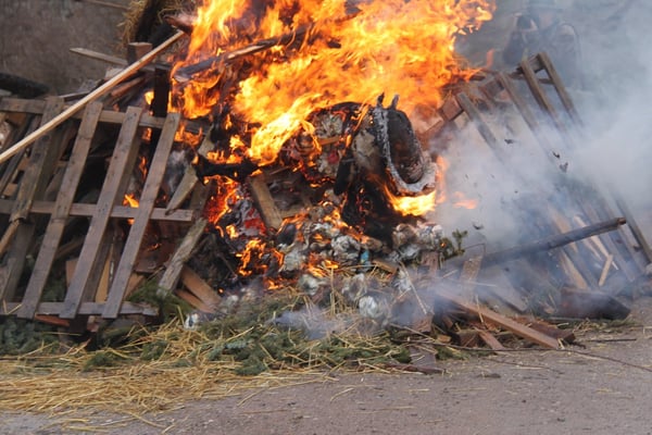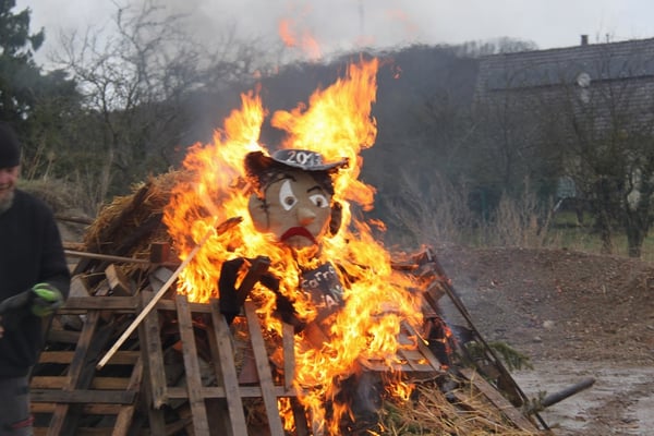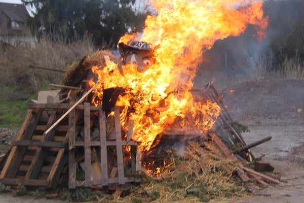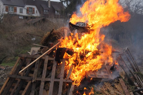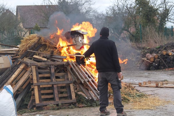 Sur son bûcher,la marionnette s'est embrasée en quelques minutes malgré la pluie, effaçant dans un grand feu de joie tous les doutes qu'elle avait suscités.