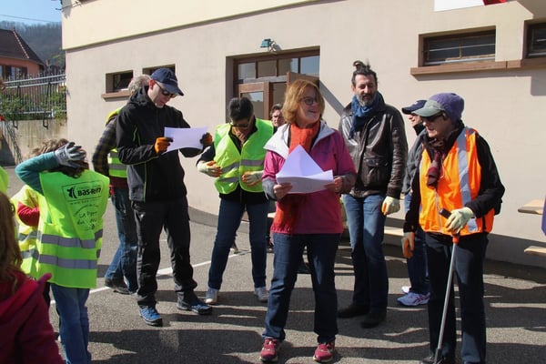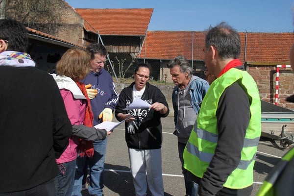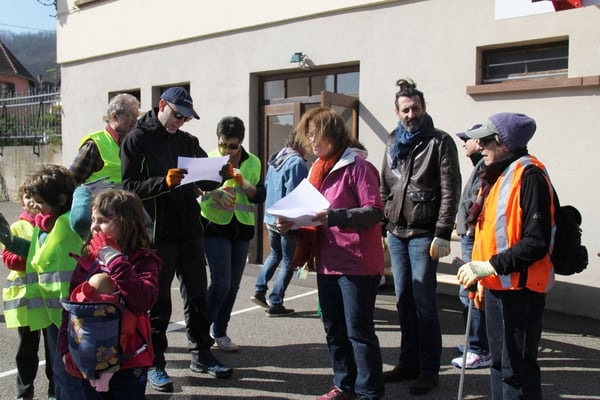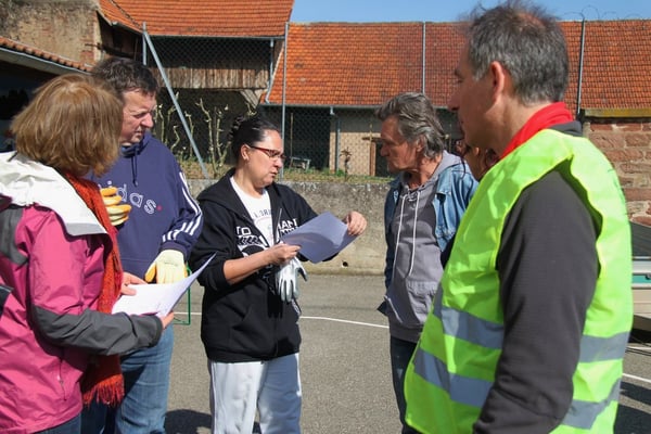 Caroline Philippe-Stenger, la présidente de l'association organisatrice "Notre Village Mon Village" a constitué les équipes intergénérationnelles, distribué les feuilles d'itinéraires de ramassage , priorité au tour extérieur du village cette année pour le nettoyage de printemps.