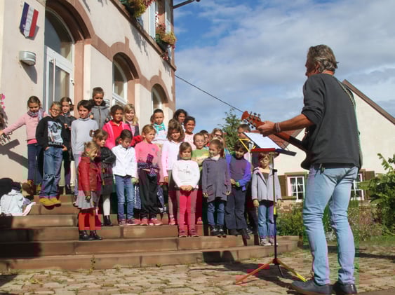 En classe, ils ont appris une chanson " J'habite Wangen", écrite spécialement pour l'occasion par Daniel Koch, conseiller municipal, .