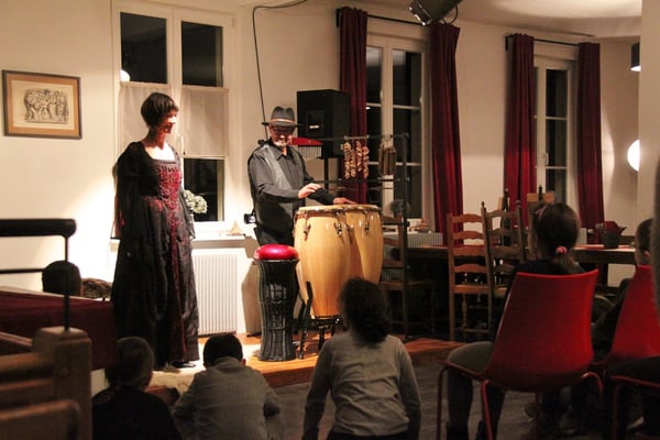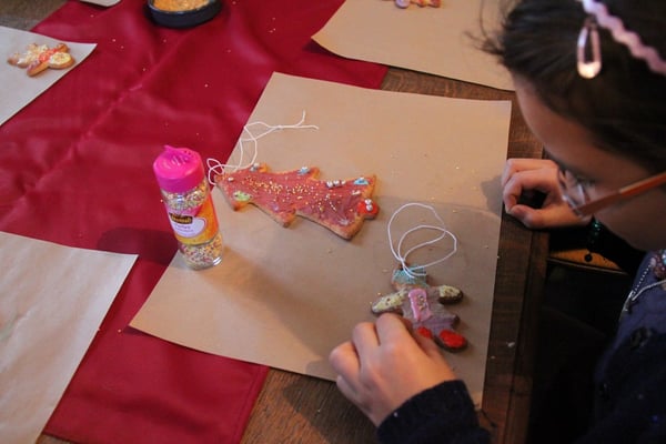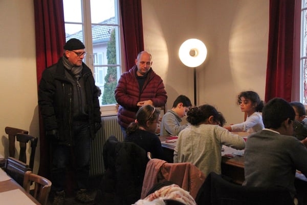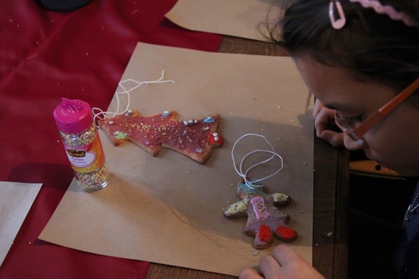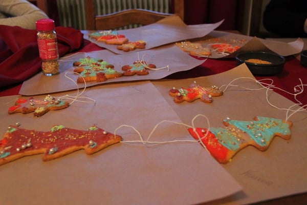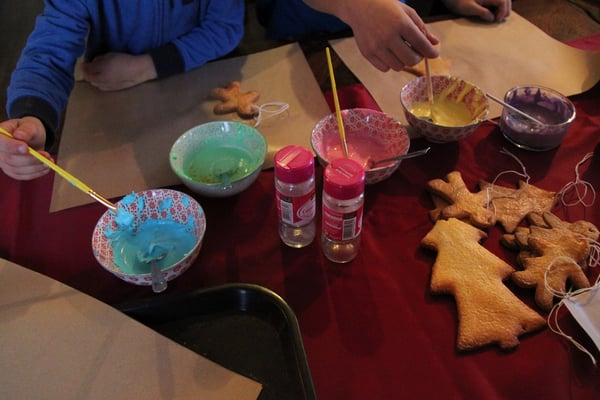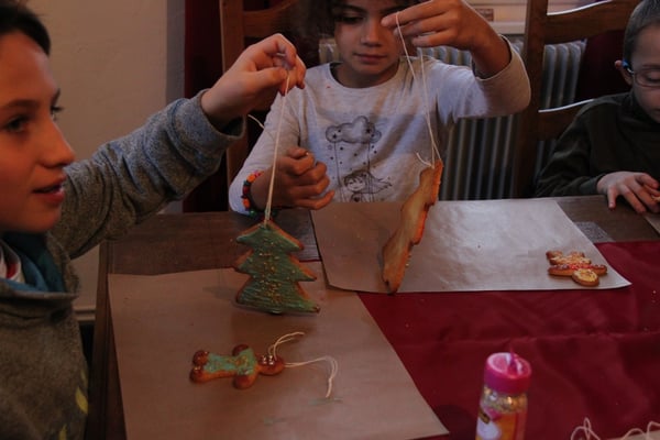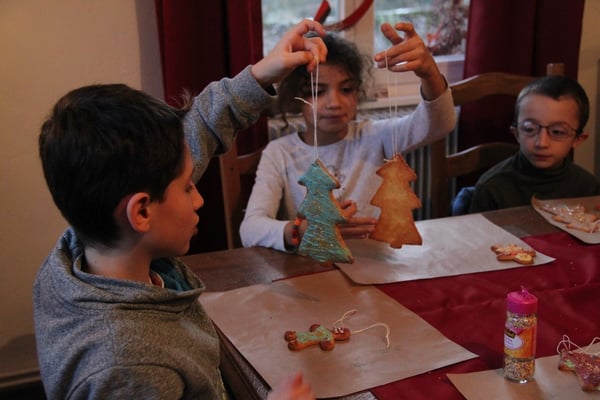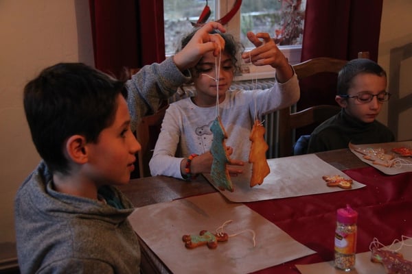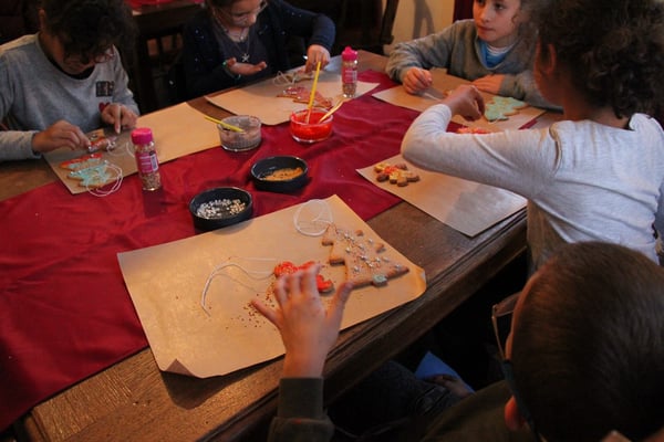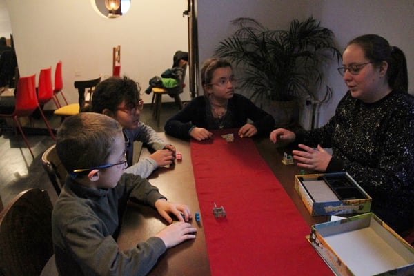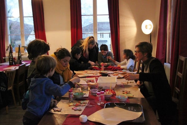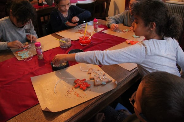 Les enfants ont tourné autour des ateliers bredele et jeux de société dans la salle du restaurant avant de se laisser porter par la magie des contes de Noël.