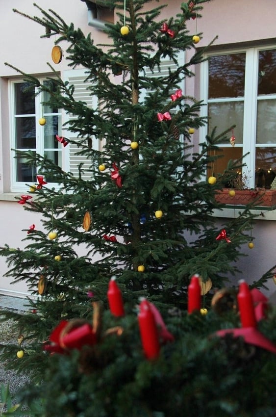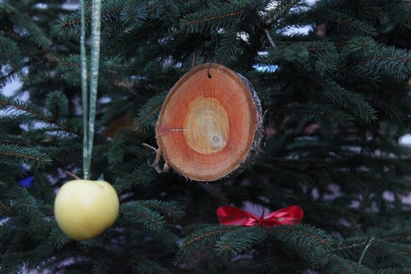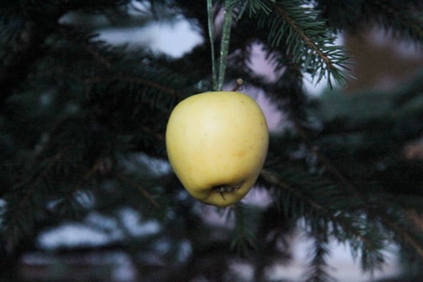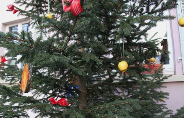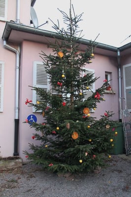 Tout le monde a pu décorer le sapin extérieur en le recouvrant surtout de petites pommes. Une fillette l'a d'ailleurs baptisé le sapin-pommier de Noël!
