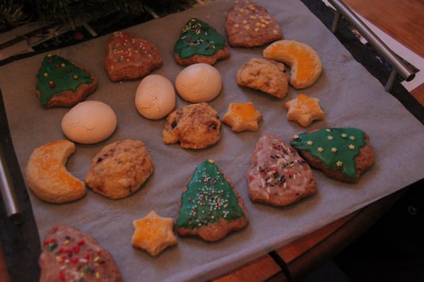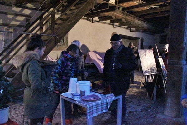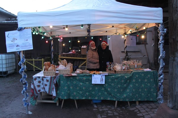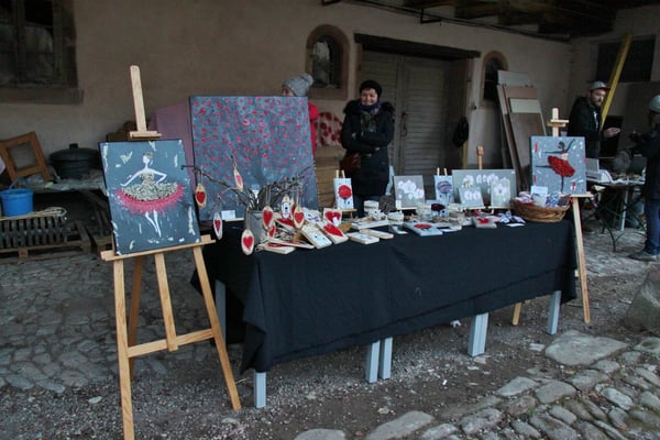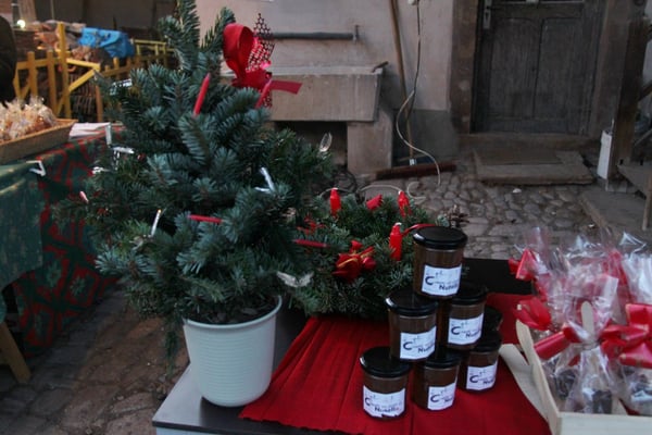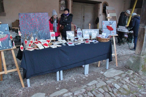 Une bonne odeur de vin chaud et de jus de pomme chaud flottait dans le fond de la cour et incitait les passants à s'avancer.