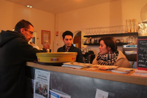 L'équipe du resto localo-spectaclo-solidaire avait réuni quelques artisans et producteurs motivés et bien équipés pour résister au froid ambiant.