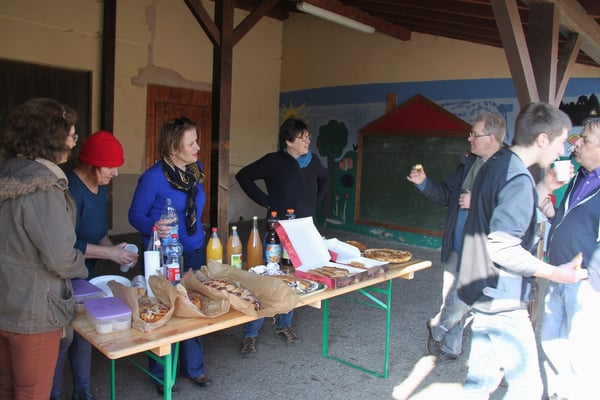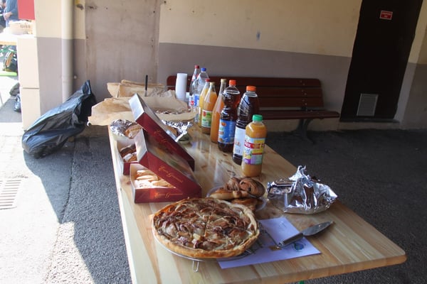 Un moment convivial dans la cour de l'école élémentaire où les membres de l'association NVMV avaient préparé un buffet de pâtisseries.