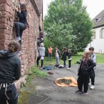 Initiation à l'escalade sur les remparts de 16h à 17h.