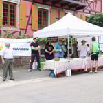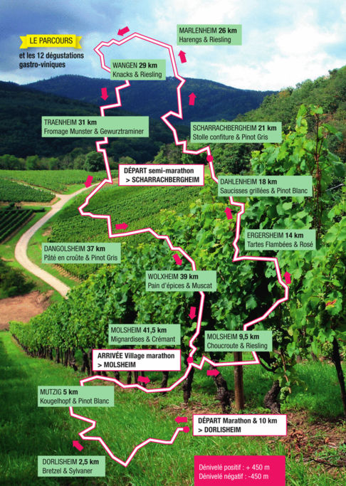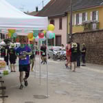 A Wangen, animation musicale devant le Niedertor, plusieurs points de ravitaillement sportif assurés par de nombreux bénévoles et un stand de dégustation gastro-vinique avec Knacks et du Riesling du domaine Thierry Martin.