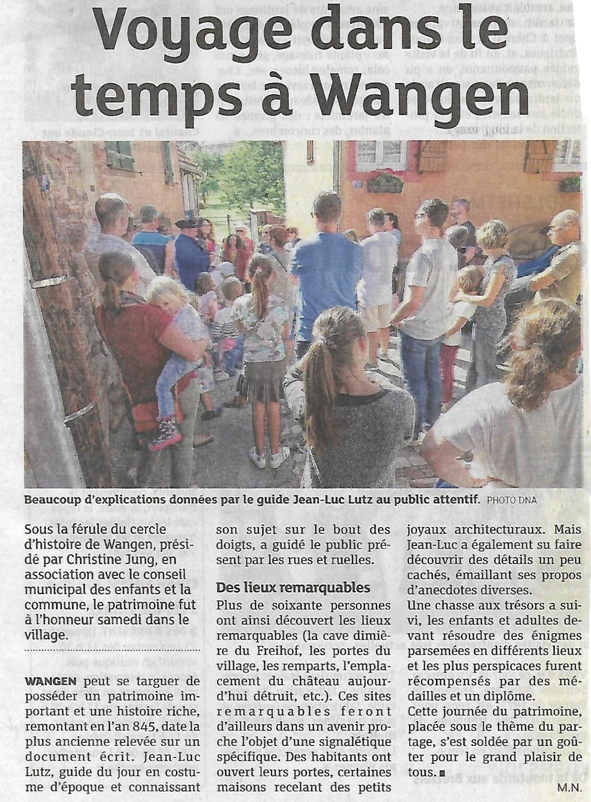 A Wangen, le samedi 15 septembre, le Cercle d'Histoire(s), le conseil municipal des enfants et la municipalité proposeront en partenariat un programme inédit permettant de mieux comprendre ce que le patrimoine historique et culturel du village présente de spécifique tout en partageant des valeurs communes.