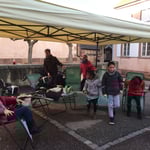 La rue du château était très joliment apprêtée et investie, un large public familial et intergénérationnel a pu y déambuler avec intérêt et plaisir.