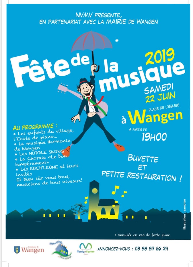 A Wangen, l'association" Notre Village Mon Village" propose en partenariat avec la municipalité une fête conviviale dans un cadre charmant, musiques variées, de qualité avec un son raisonnable permettant de se parler.