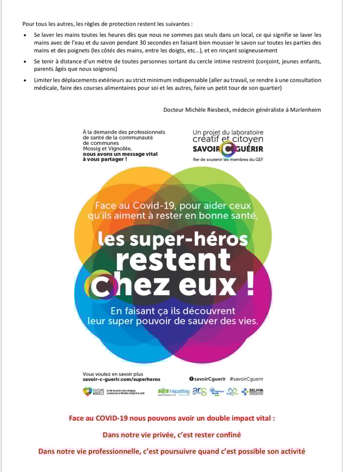 Devant l’urgence sanitaire actuelle, tout est allé très vite : idée, proposition, écriture, impression tout cela en 6 heures, grâce à l’équipe municipale de Marcel Luttmann, toujours en place dans les circonstances actuelles, et avant tout préoccupée par l’intérêt collectif, tout d’abord sanitaire, mais aussi économique et social de notre commune.