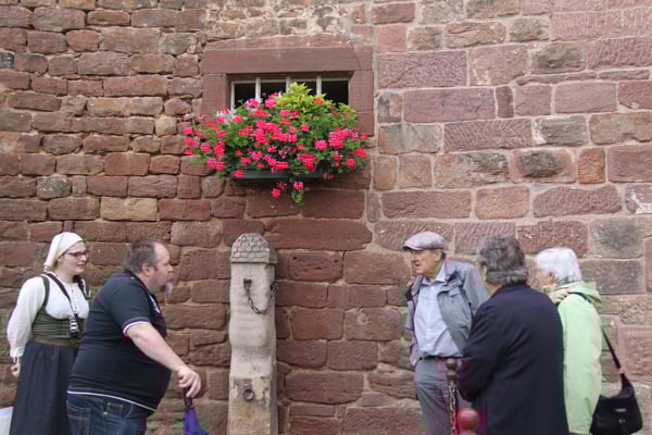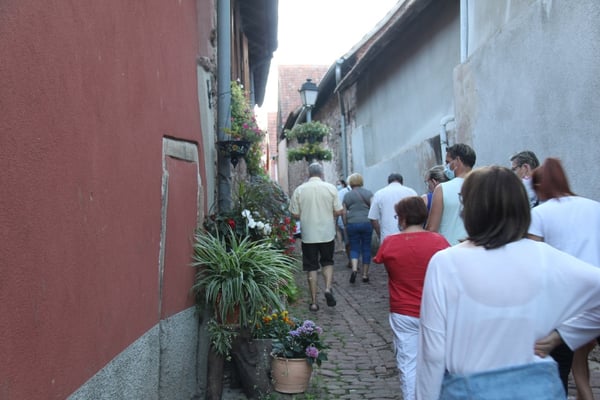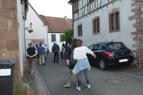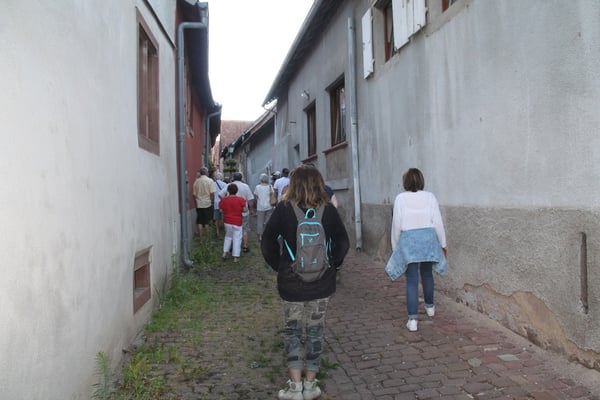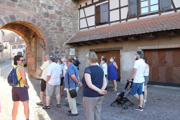 Visite commentée du village en partie sous la pluie mais toujours dans la bonne humeur pour le plus grand plaisir des visiteurs, ce mercredi 15 juillet, avec Laurence et Jean-Luc du Cercle d'Histoire(s) de Wangen.