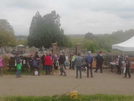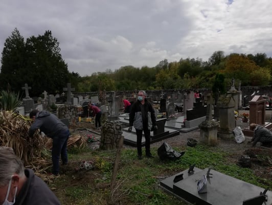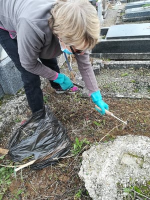 Au programme de l'après-midi , désherbage, goûter et évocation de l'Histoire du cimetière.