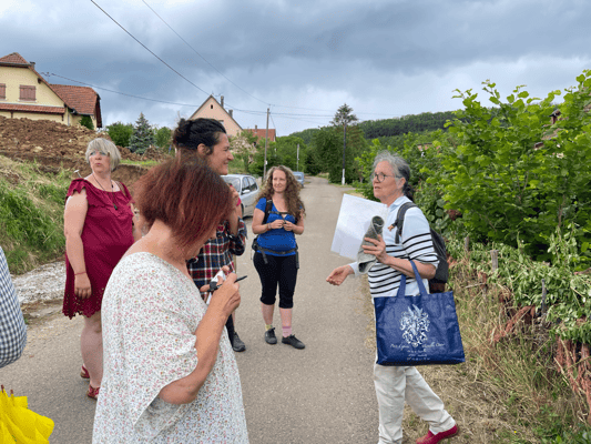 Betty, botaniste avertie nous a fait découvrir des arbres remarquables du village entre deux averses. Elle complétera sa promenade aux journées du patrimoine à Wangen, le 17 septembre.