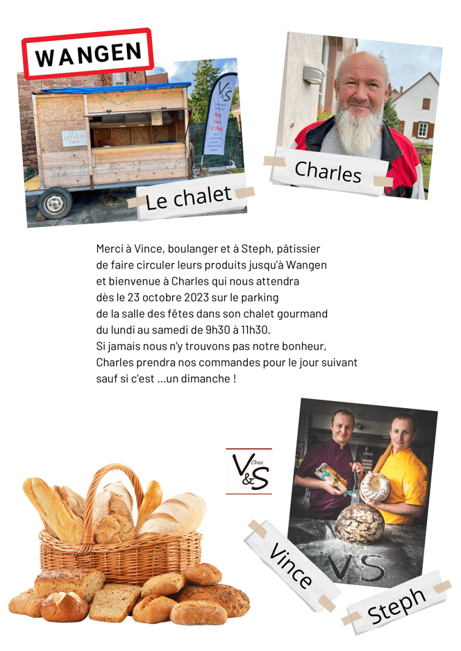 Acheter du pain dans le village, voilà une habitude que les habitants de Wangen avaient perdue et qu'ils vont pouvoir retrouver ! Dans quelques jours,le 23 octobre, ils pourront profiter d'un service de proximité immédiate : sa roulotte à pains et douceurs ouverte 6 jour sur 7, du lundi au samedi de 9h30 à 11h30.