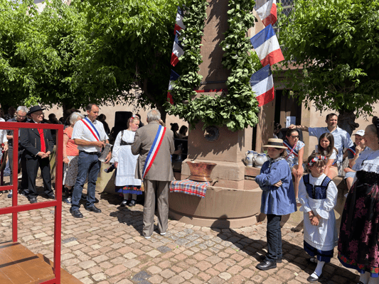 Sur les coups de 11 h, ne manquez pas de goûter le célèbre vin de l’amitié et du souvenir qui s’écoulera gratuitement de la Fontaine, après le discours du maire, en français et en alsacien, dans la pure tradition, au son de la Musique de Wangen. et en compagnie de la troupe