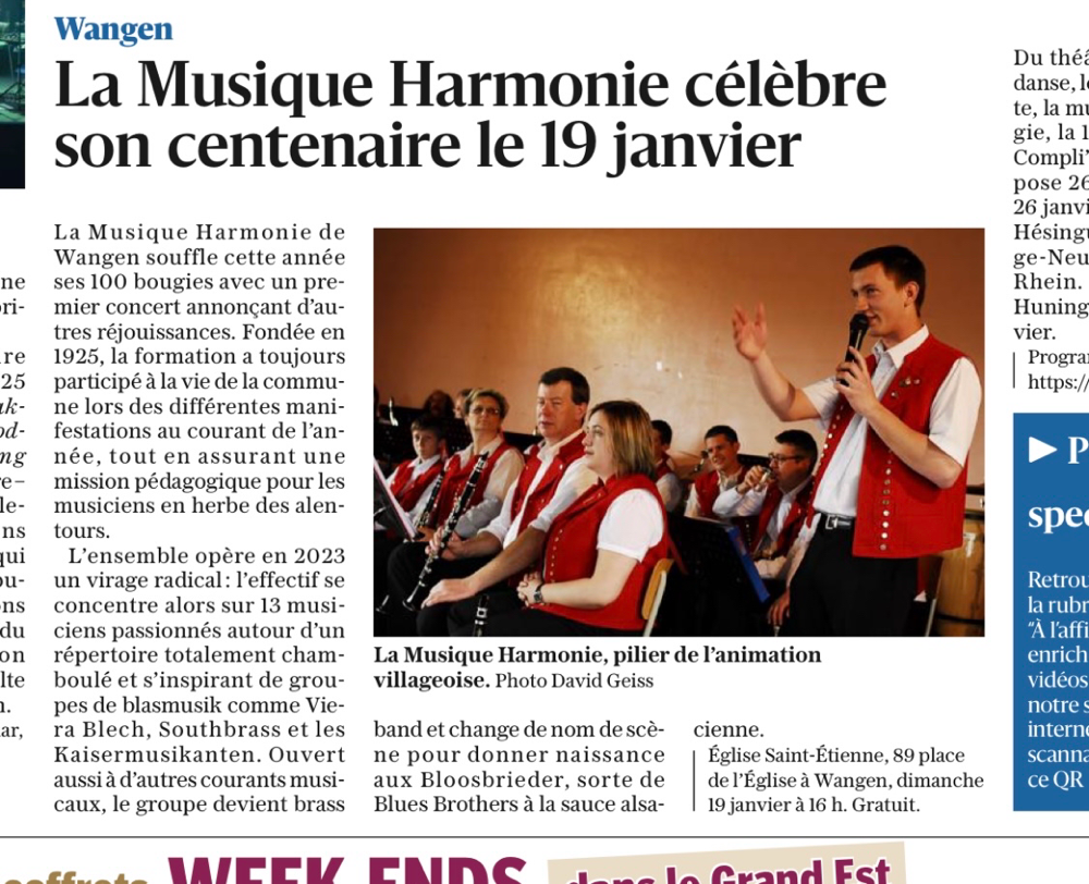 C'est en novembre 2023, à l'occasion de son dernier concert d'automne que la Musique Harmonie de Wangen a changé de casquette, de costume et de nom !