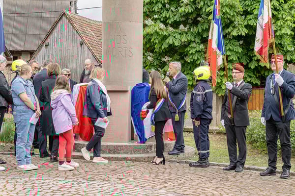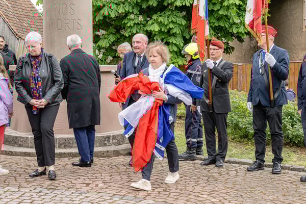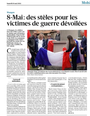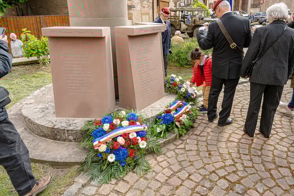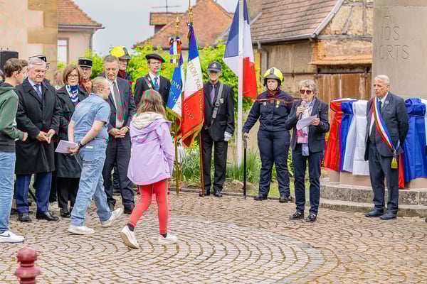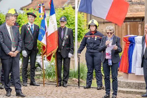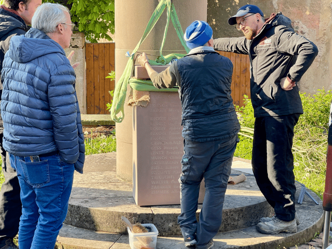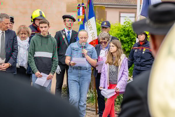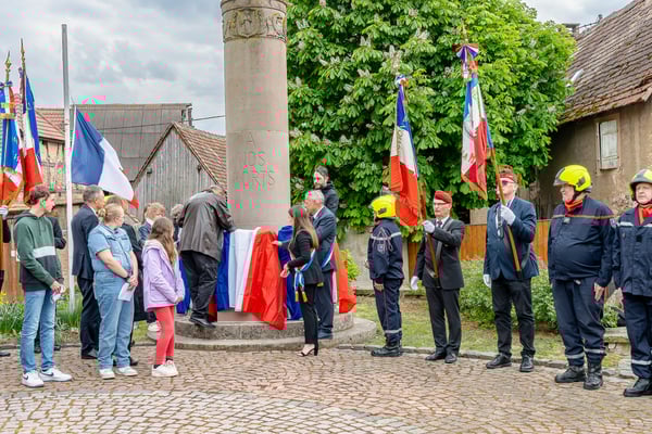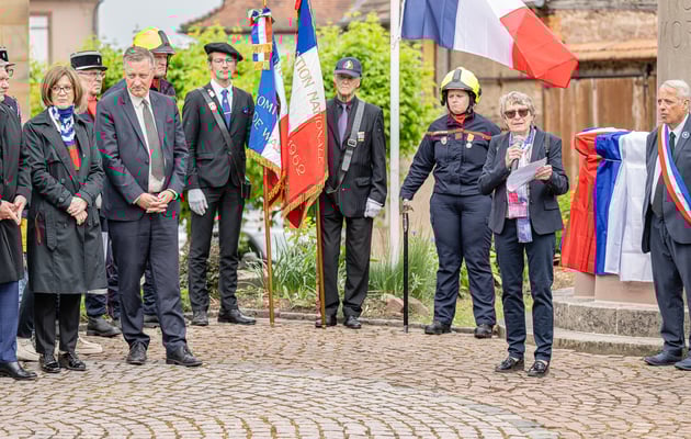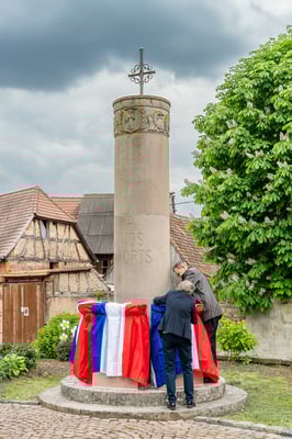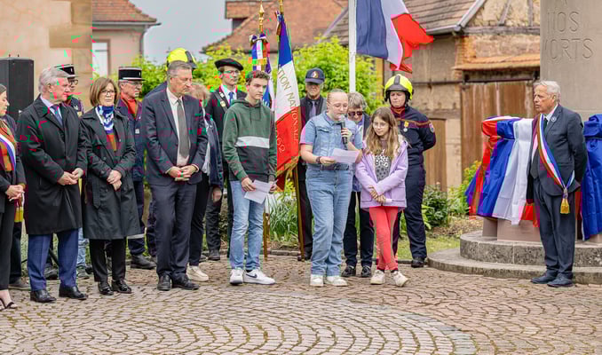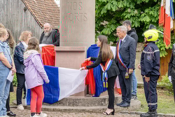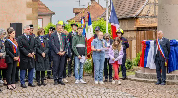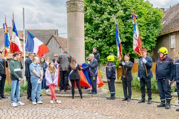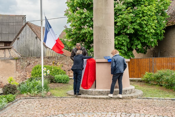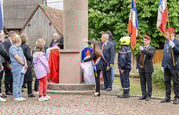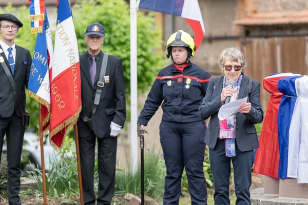 Violette Arbogast s'est alors consacrée aux trois stèles qui ont été posées devant le monument aux morts le 22 avril et sont inaugurées ce 8 mai 2025.