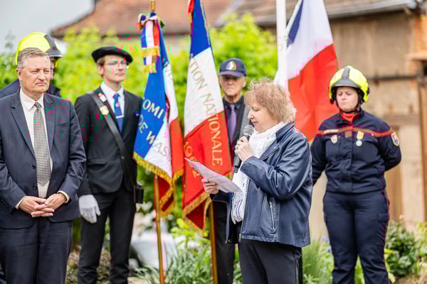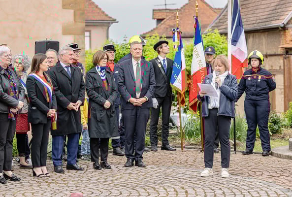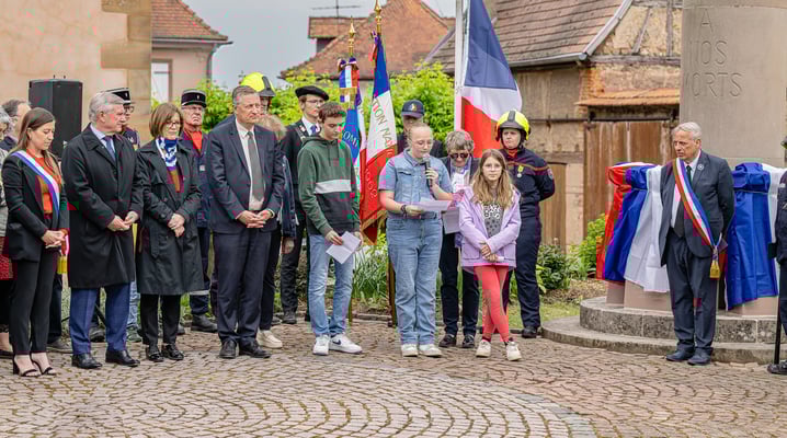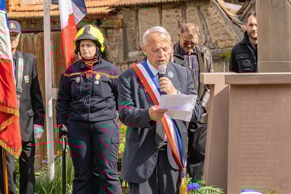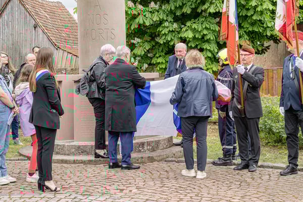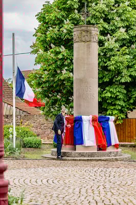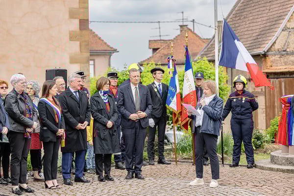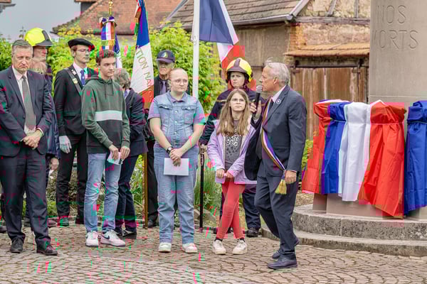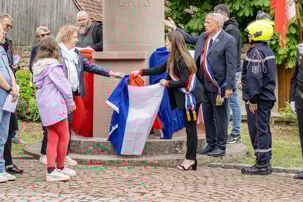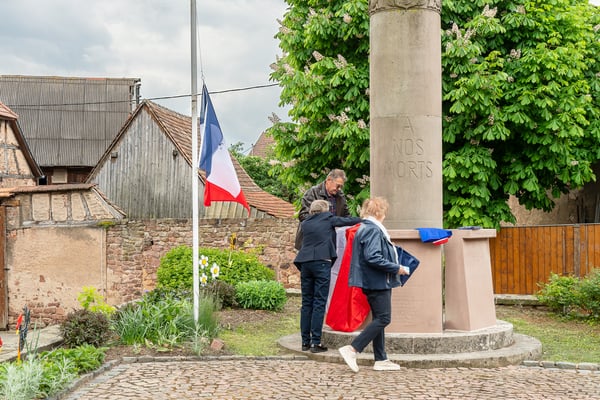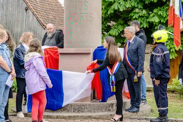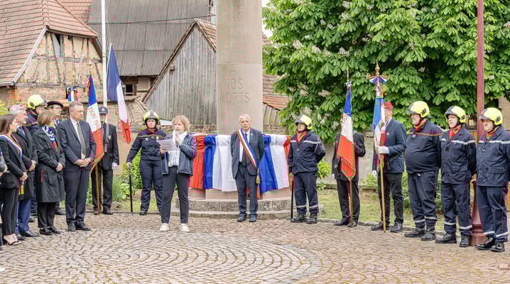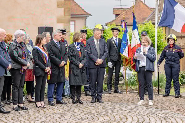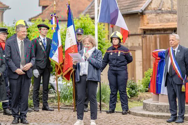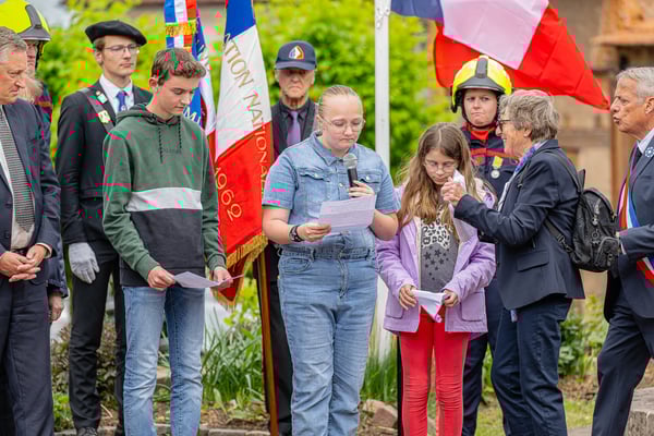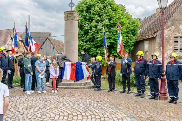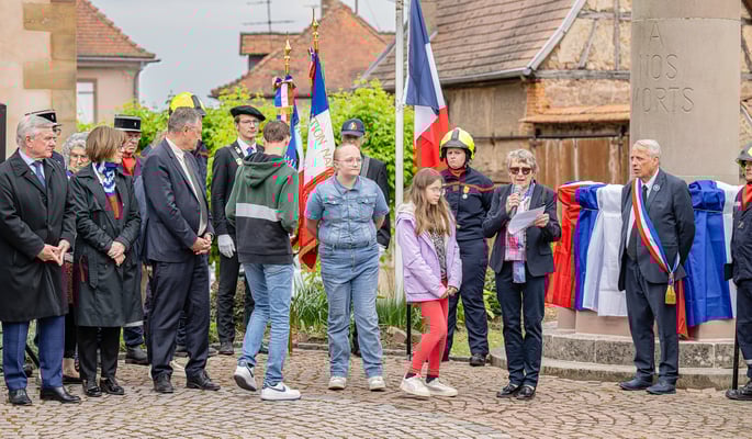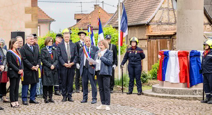 Violette Arbogast s'est alors consacrée aux trois stèles qui ont été posées devant le monument aux morts le 22 avril et sont inaugurées ce 8 mai 2025.