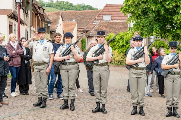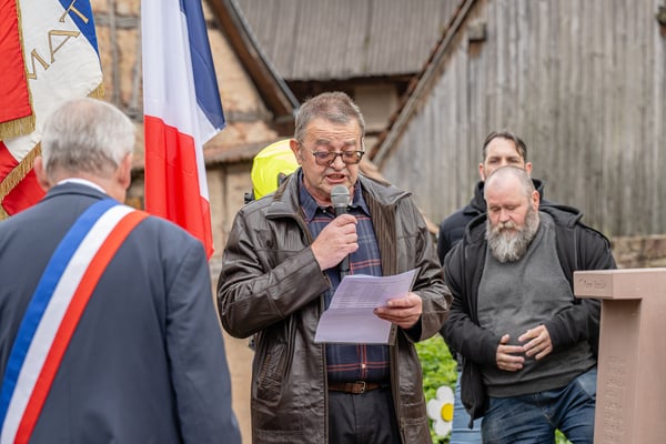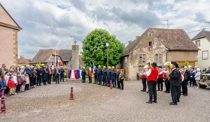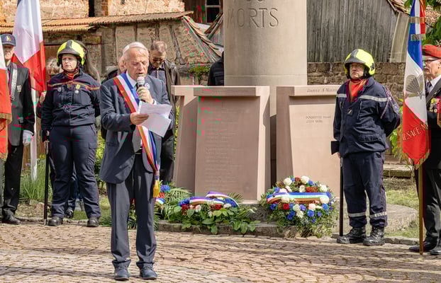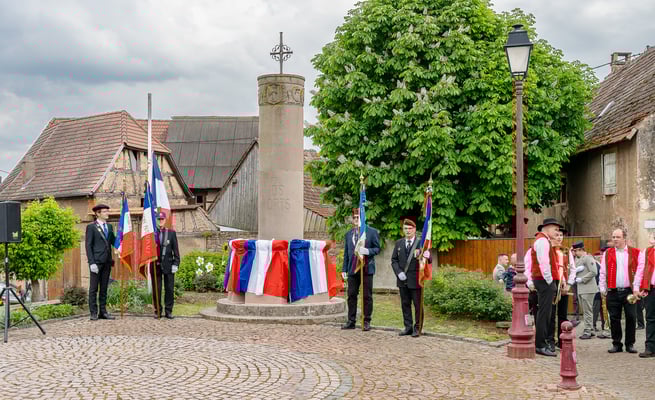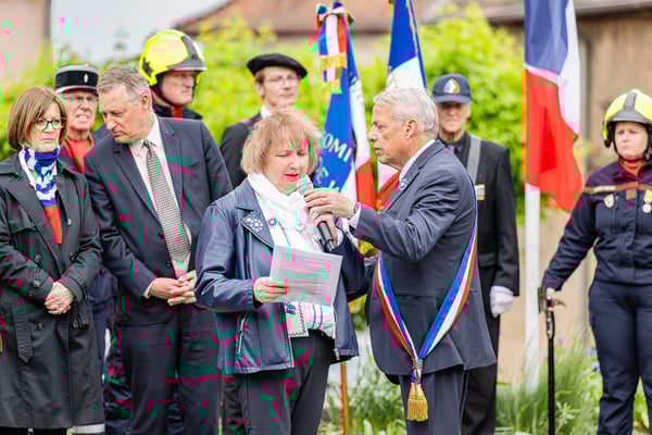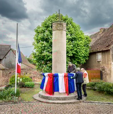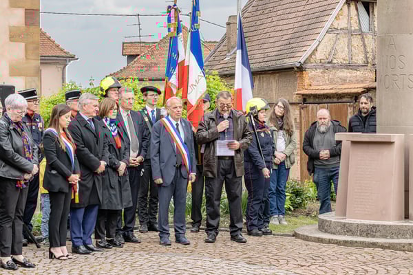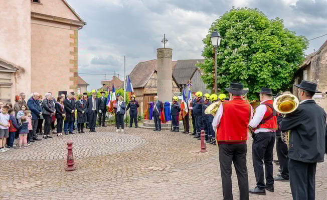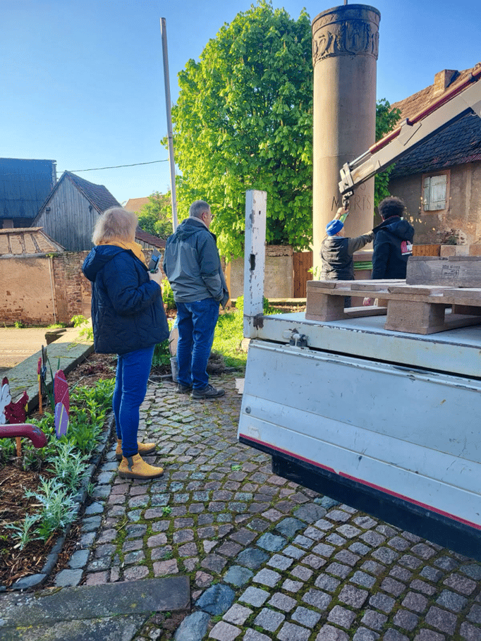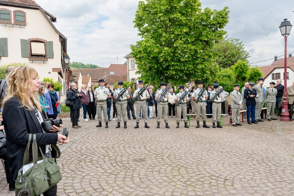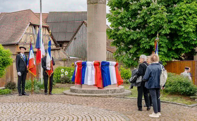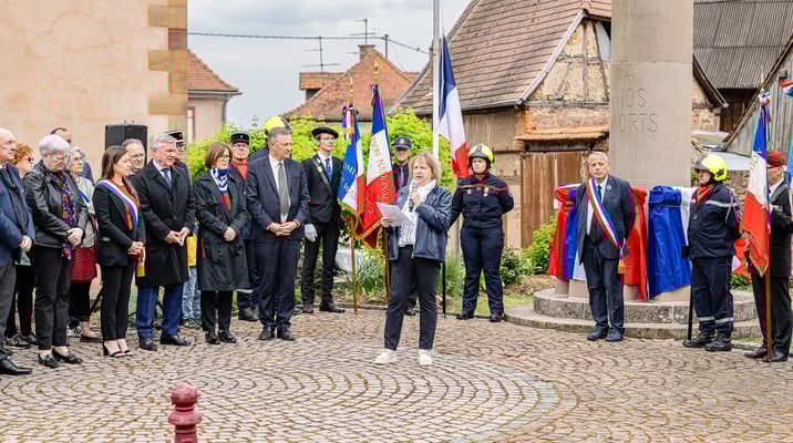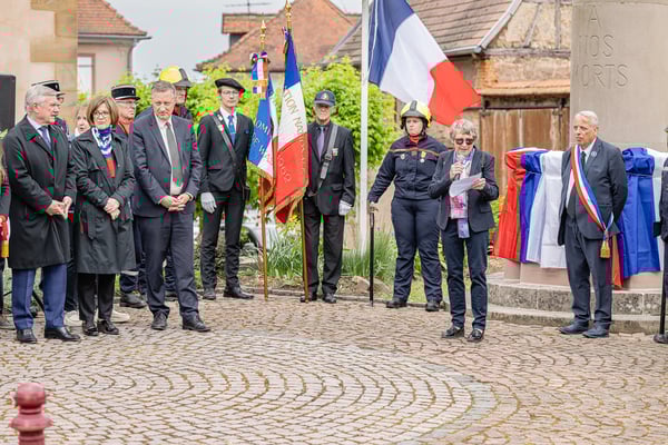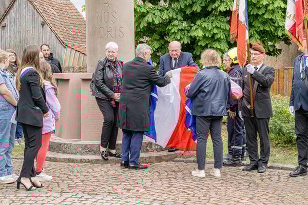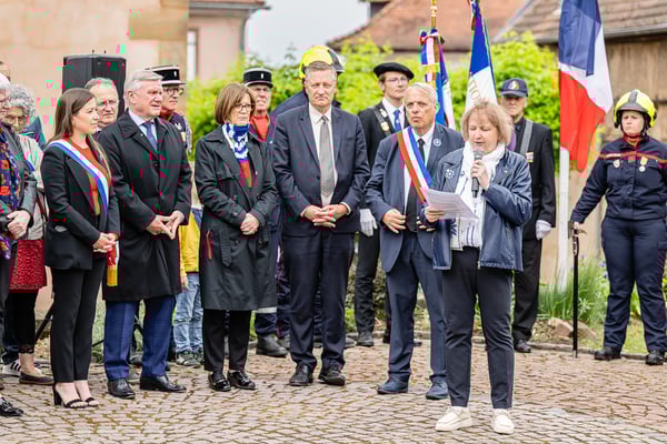 Violette Arbogast s'est alors consacrée aux trois stèles qui ont été posées devant le monument aux morts le 22 avril et sont inaugurées ce 8 mai 2025.