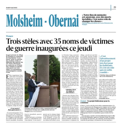 3 articles DNA Molsheim avec les stèles pour sujet