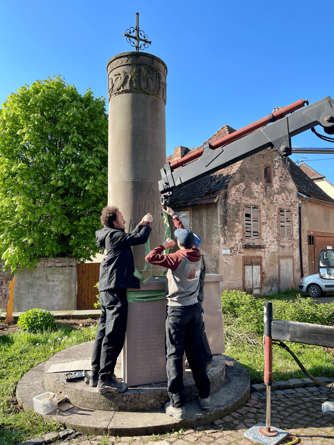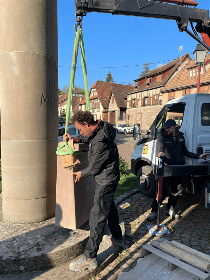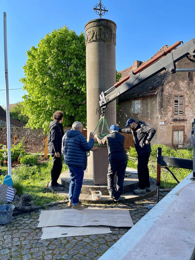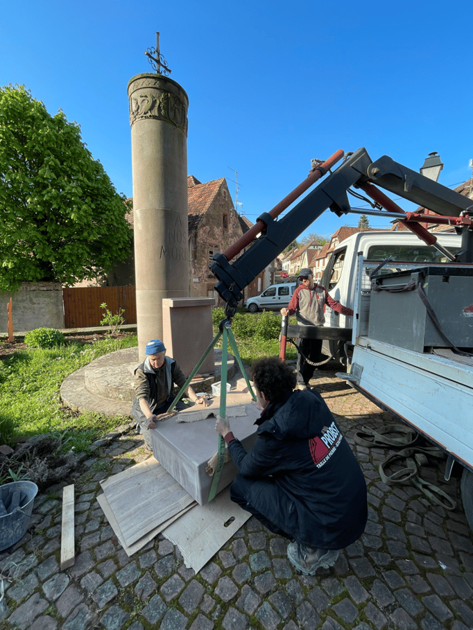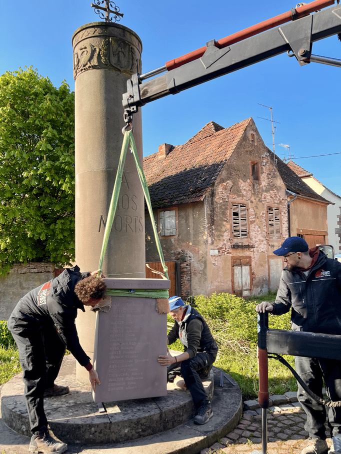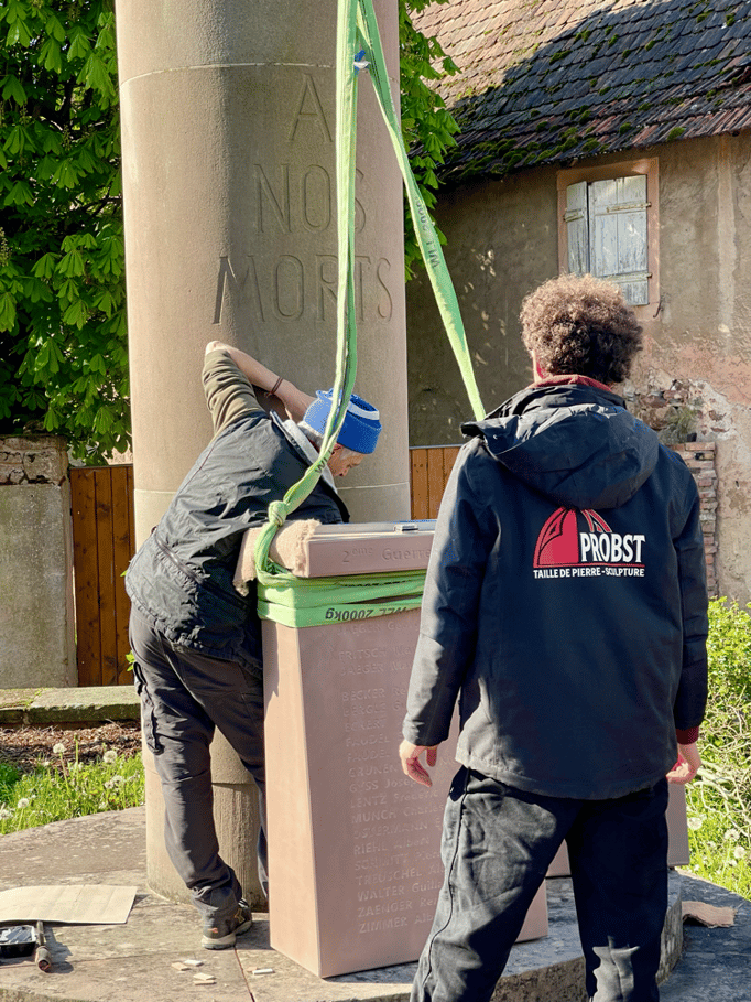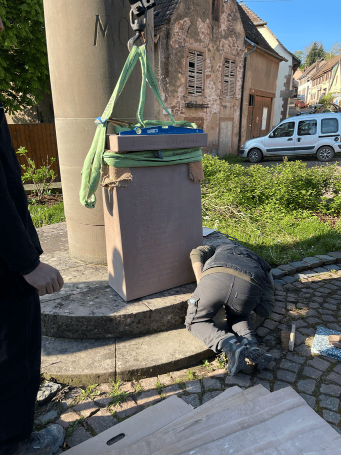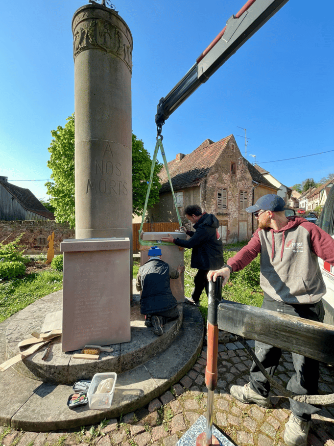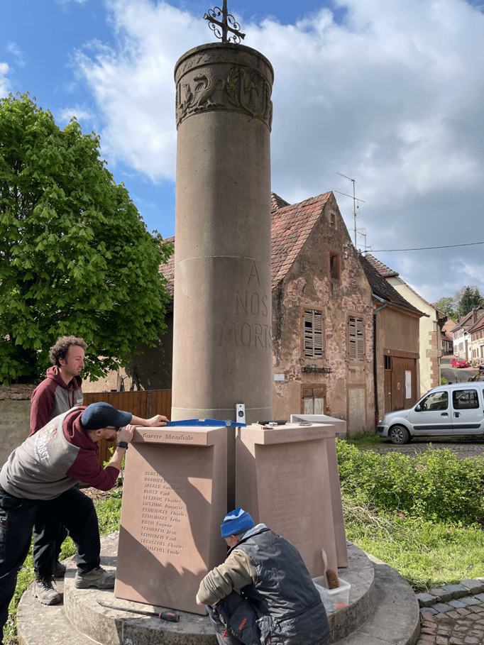 Fin 2024, le cercle d'Histoire(s) commande trois stèles gravées de 550 lettres à Violette Arbogast, tailleur de pierres à Westhoffen. (Wangen apprécie les tailleurs de pierre de Westhoffen !)