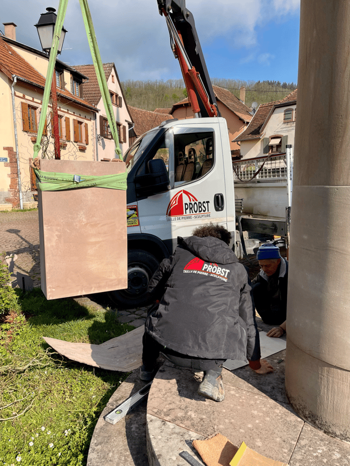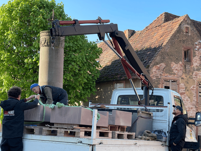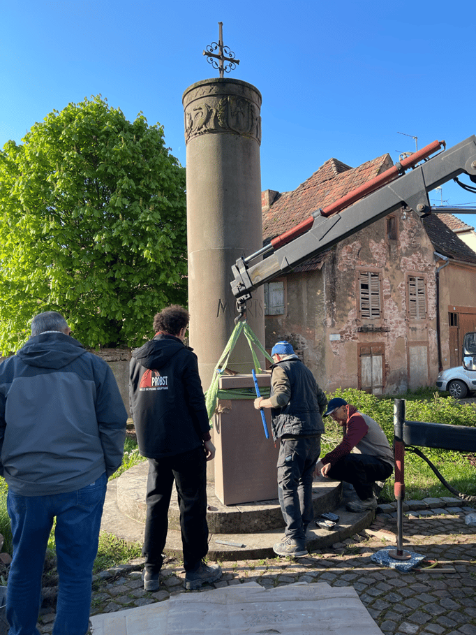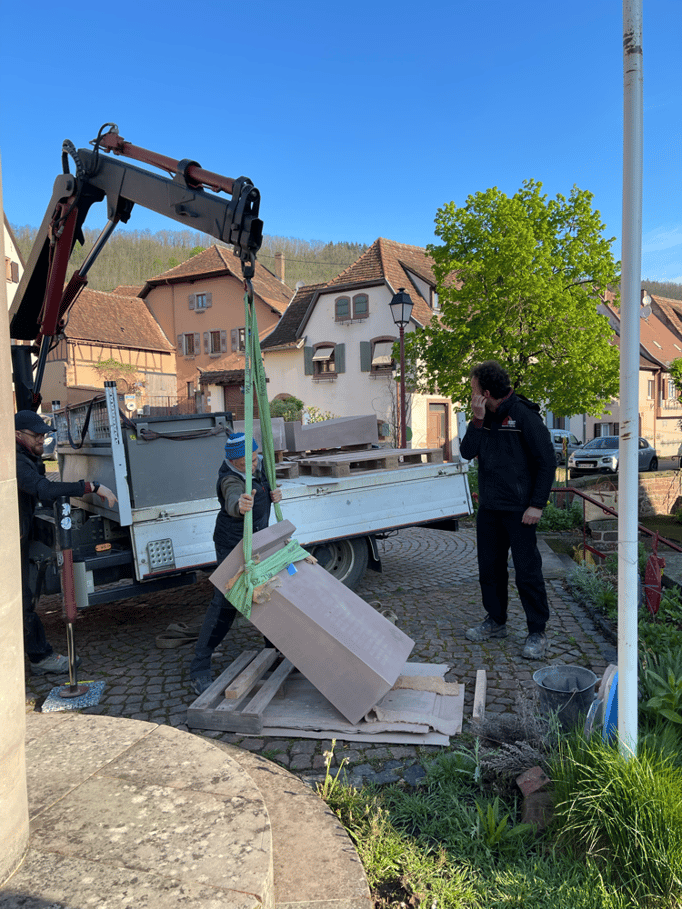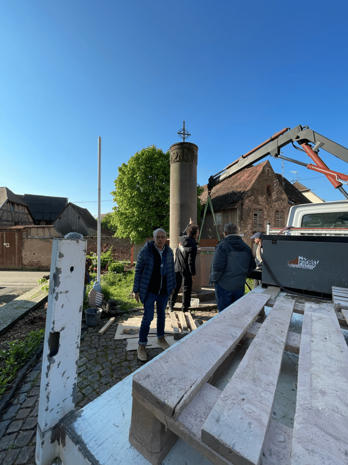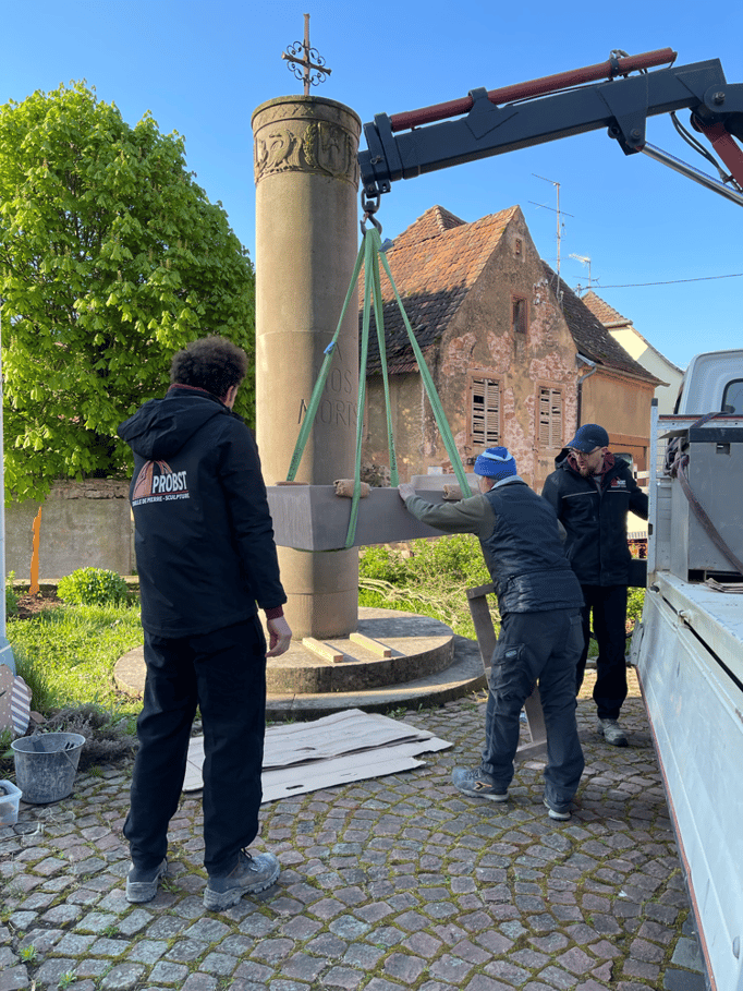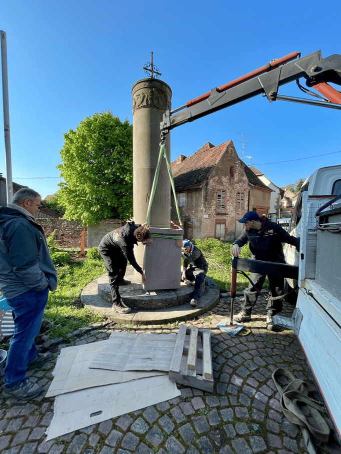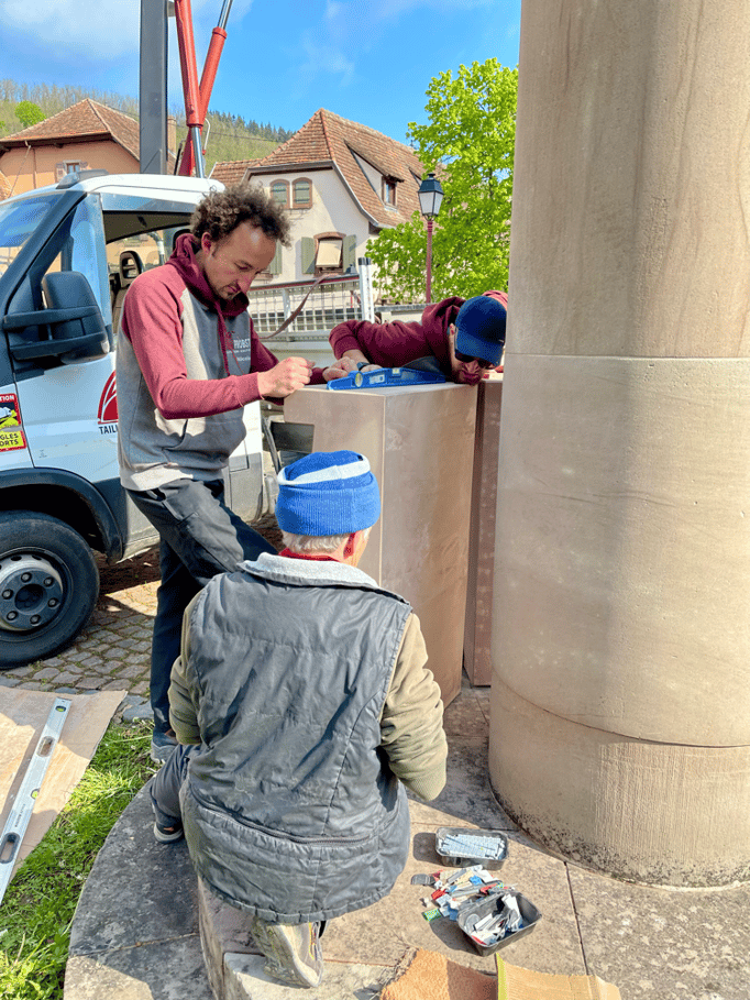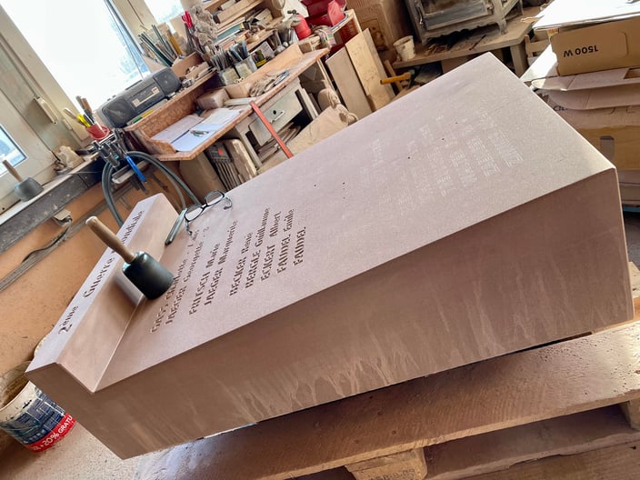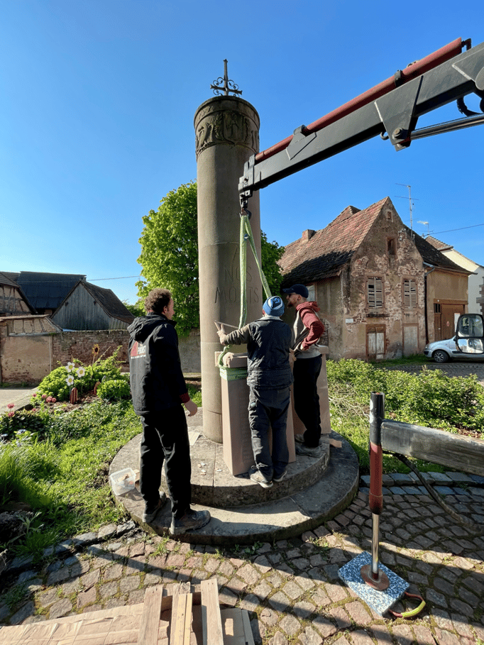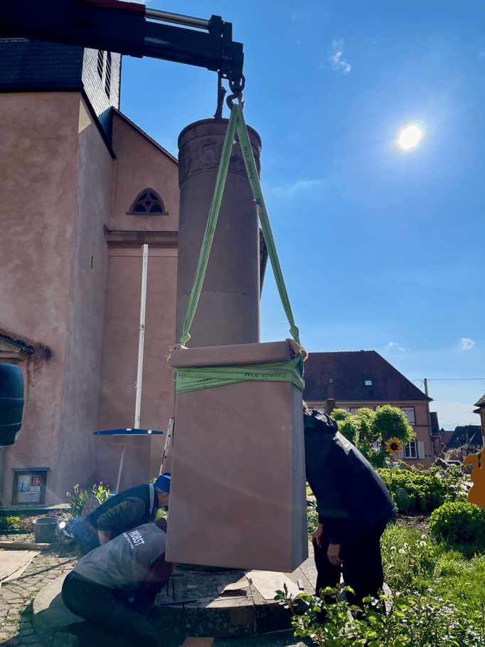 Fin 2024, le cercle d'Histoire(s) commande trois stèles gravées de 550 lettres à Violette Arbogast, tailleur de pierres à Westhoffen. (Wangen apprécie les tailleurs de pierre de Westhoffen !)