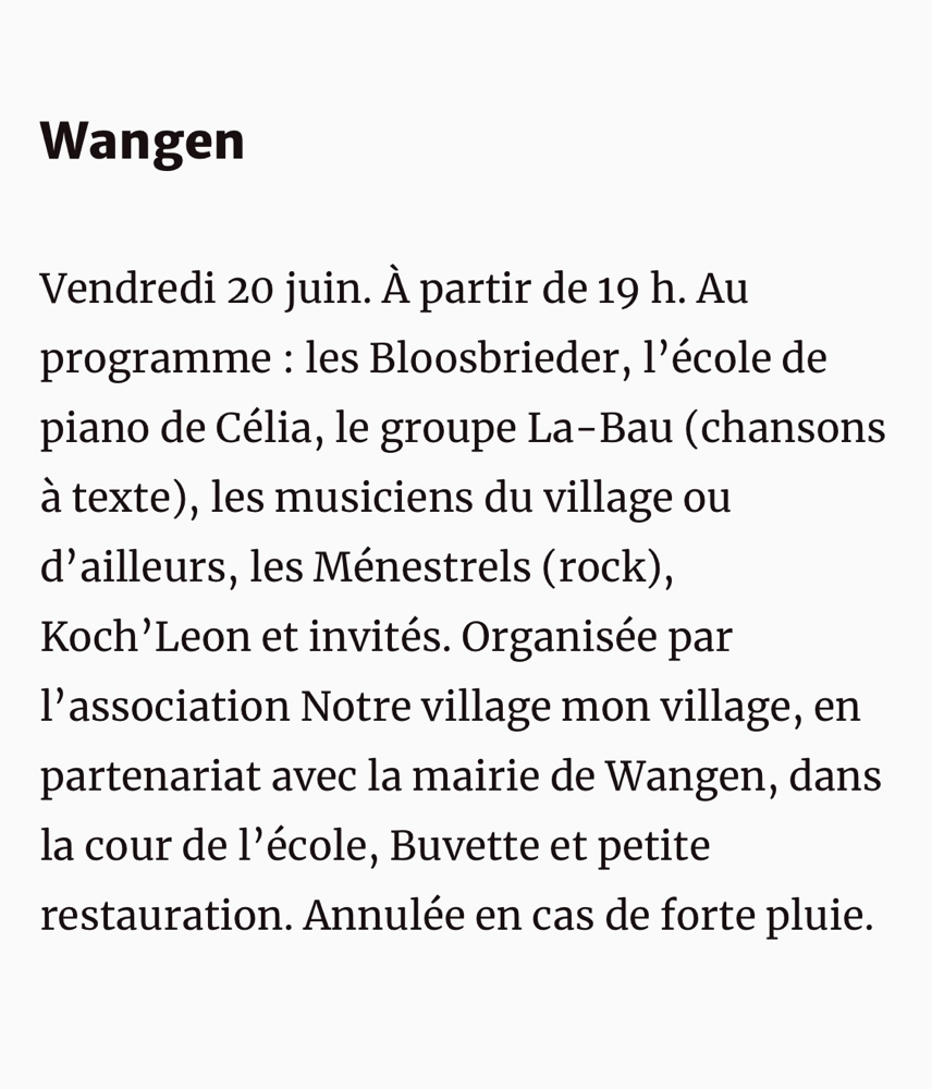 La Fête de la musique revient le vendredi 20 juin à Wangen !