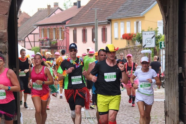 Le Marathon du Vignoble d’Alsace est un événement festif incontournable qui se déroule chaque mois de Juin. Il réunit des participants du monde entier dans une ambiance joyeuse et conviviale, où le sport se mêle à la fête. Que vous soyez un coureur aguerri, un amateur de marche, un enfant curieux ou un adulte à la recherche de nouveaux défis, cet événement est ouvert à tous, avec ou sans déguisement !