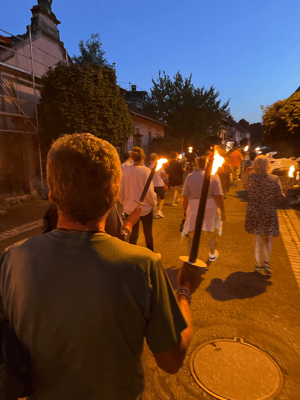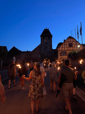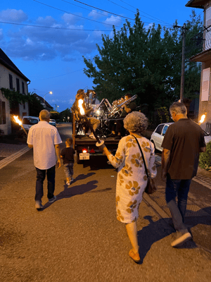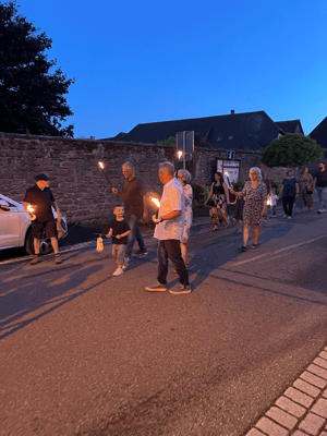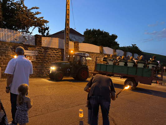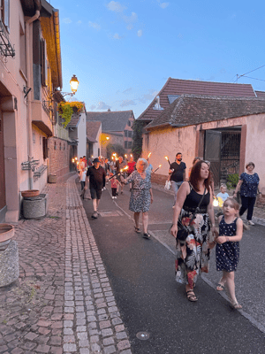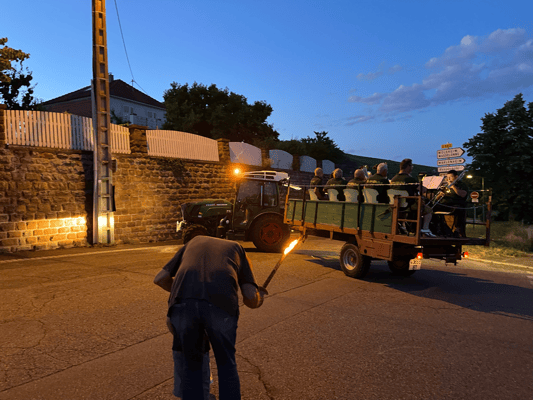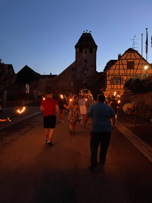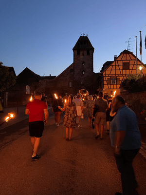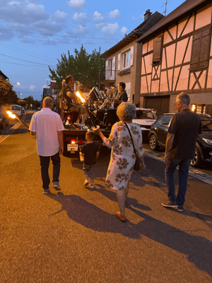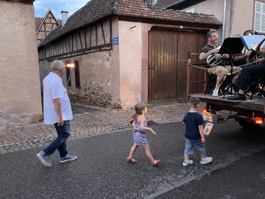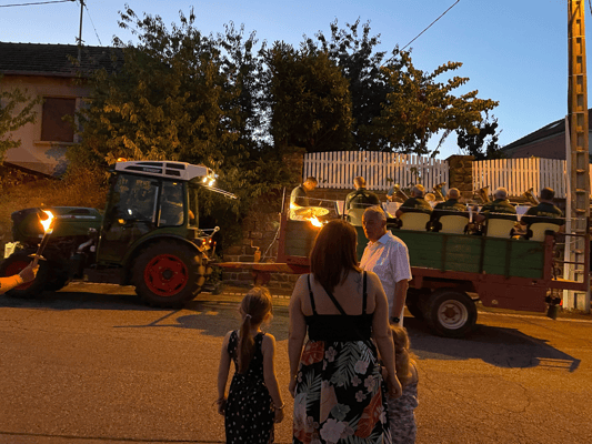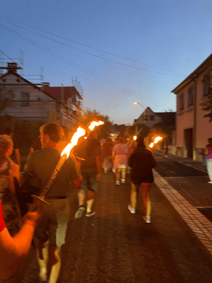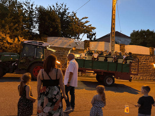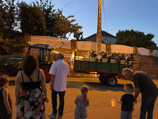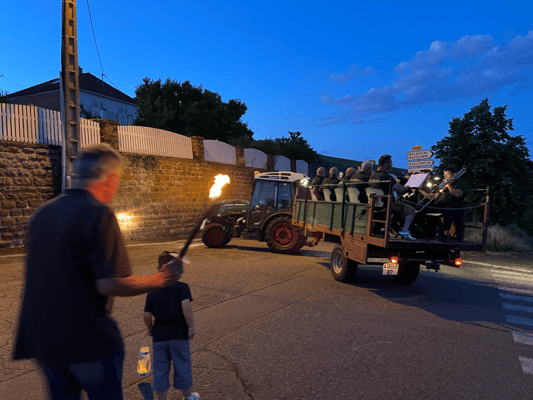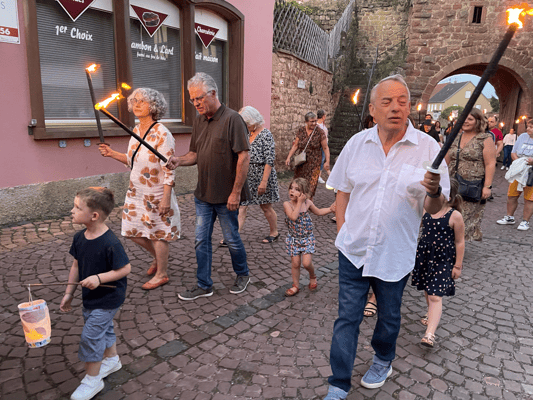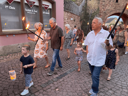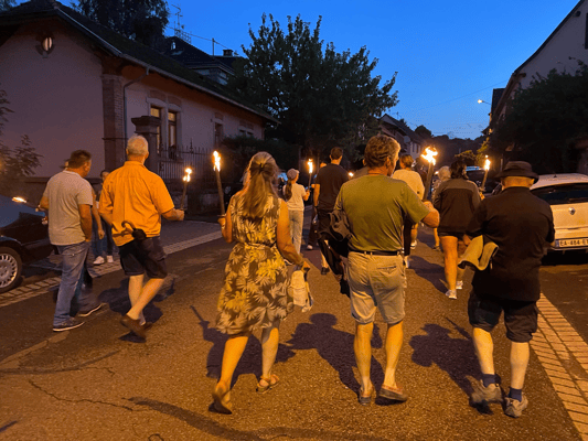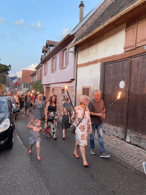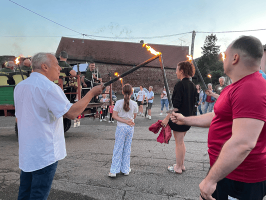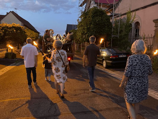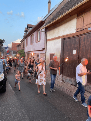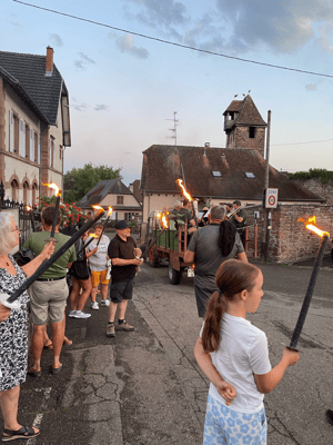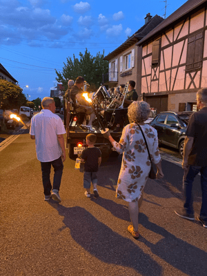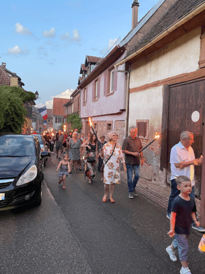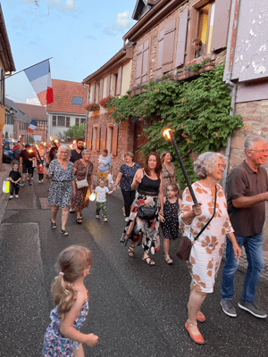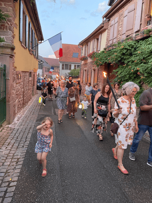 La soirée commencera par une retraite aux flambeaux en musique qui partira de la cour de l'école. Le défilé fera le tour du village. La soirée se terminera par le verre de l'amitié.