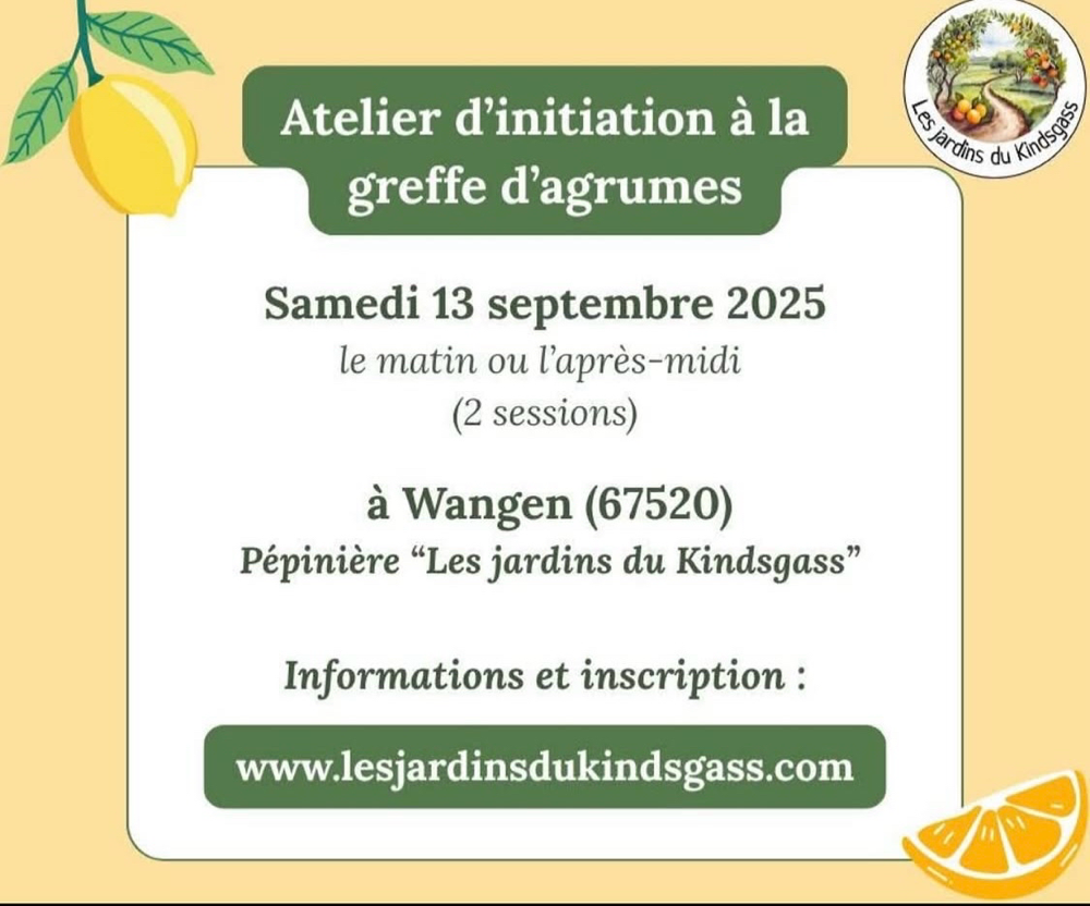 La pépinière "Les jardins du Kindsgass" vous propose un atelier sur la greffe des agrumes.