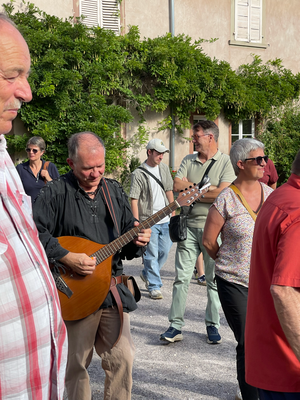 Hoplà, direction la salle des fêtes. Là il y a à boire, à manger et un accompagnement musical.