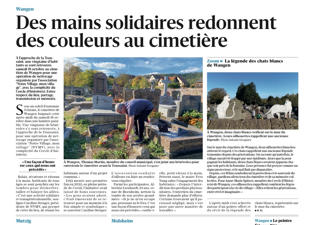 L'association NVMV vous invite à participer à une action de nettoyage des allées du cimetière de Wangen avant la Toussaint.
