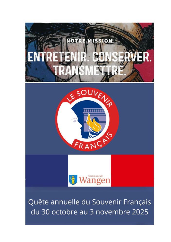 Le Souvenir Français lance sa quête annuelle et sollicite notre générosité devant les cimetières de nos communes du 30 octobre au 3 novembre 2025.