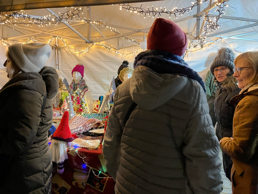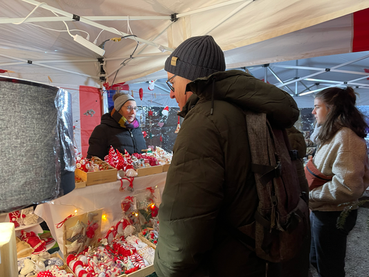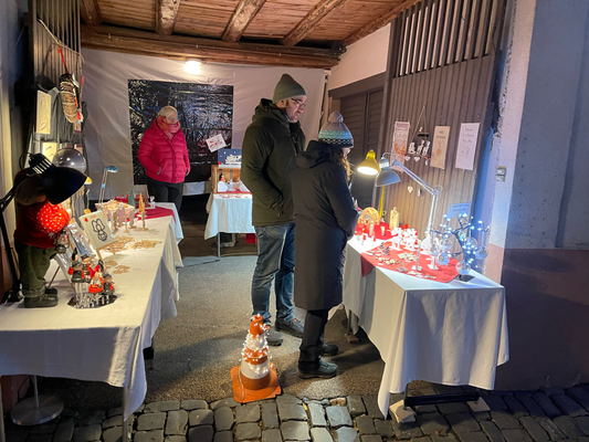 Des lumières et guirlandes scintillent au-dessus des rues, l’air se remplit de parfums de vin chaud, de cannelle et de gourmandises artisanales, et les voix des créateurs résonnent sous les arches et dans les cours.