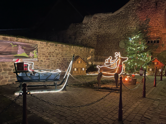 Les visiteurs déambulent comme dans un rêve, entre les étals chaleureux, les lumières dorées et les notes de musique hivernale qui s’échappent de la rue du château.