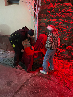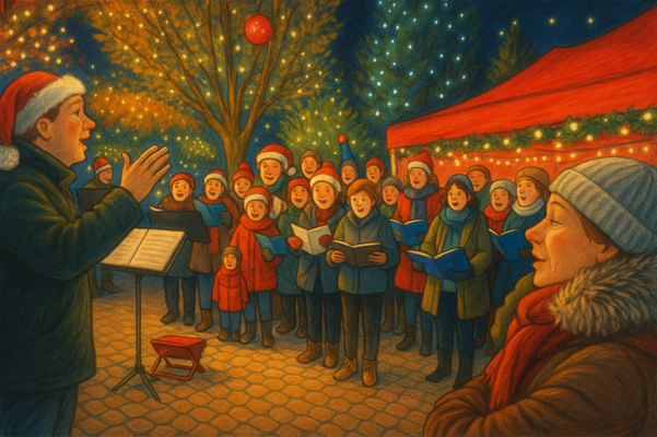 La chorale chante Noël au centre de la rue du Château :
