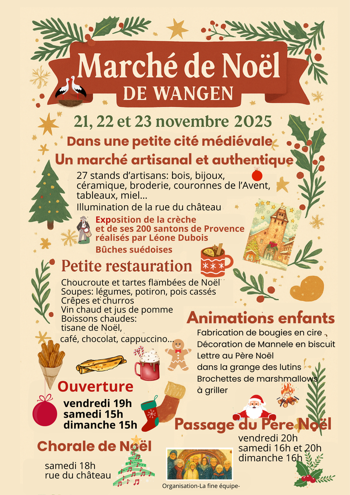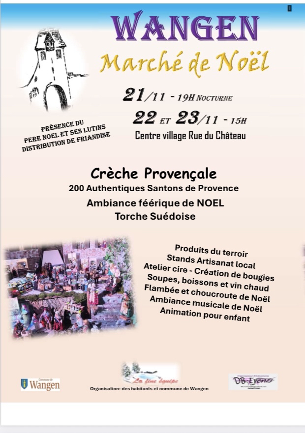 Organisé par " la Fine Equipe" le marché de Noël de Wangen revient comme par magie depuis 7 ans maintenant.