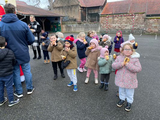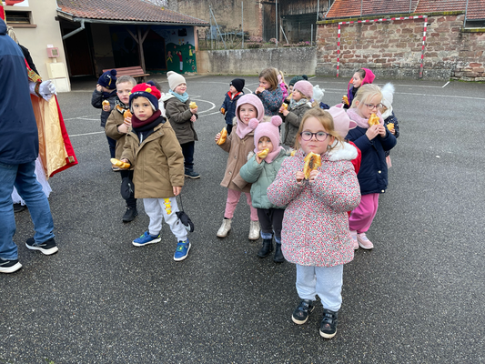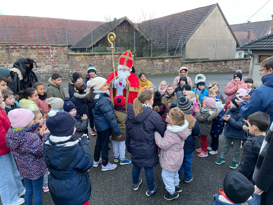 Avec un jour d’avance, Saint Nicolas et le Père Fouettard sont passés à l’école de Wangen pour y saluer les enfants.
