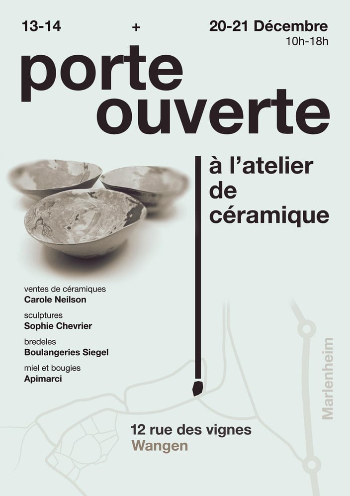 Les 13–14 et 20–21 décembre 2025, de 10h à 18h, vous êtes invités à pousser la porte de l’atelier de céramique pour découvrir un univers de création et de