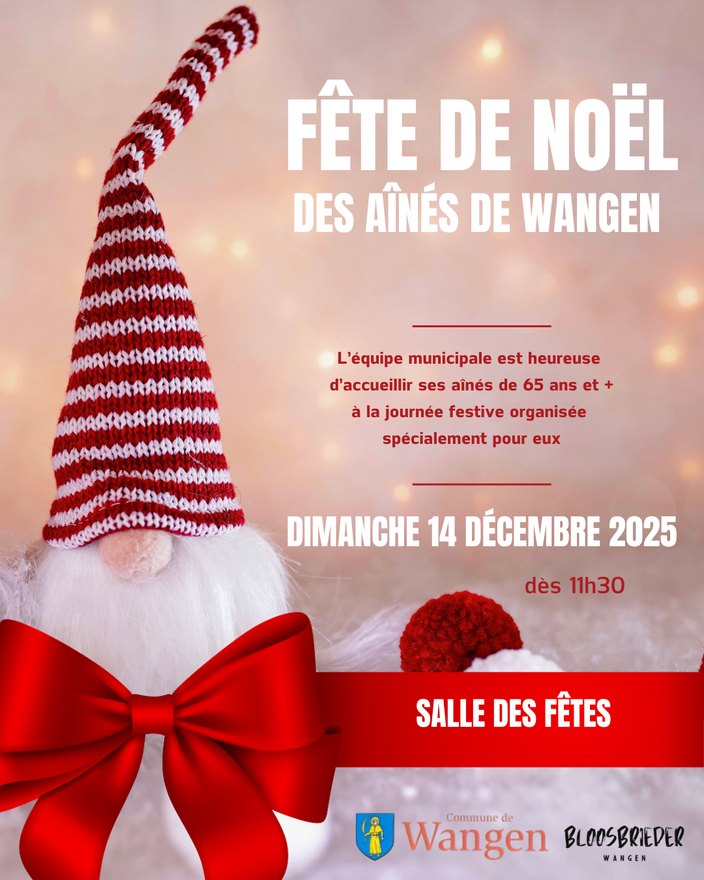 Pour sa traditionnelle fête des aînés, la municipalité à le plaisir de convier tous les habitants de 65 ans et + le dimanche 14 décembre 2025 à la salle des fêtes dès 11h30.