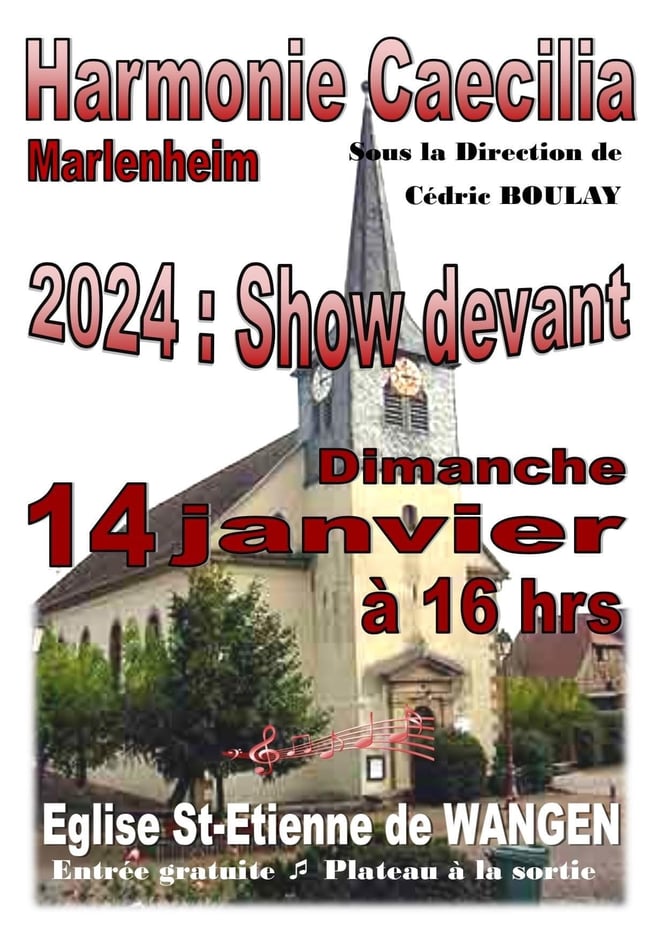 Les musiciens de l'harmonie Caecilia de Marlenheim sous la direction de Cédric Boulay préparent leur concert du Nouvel An. Le show musical qui s'annonce prometteur se déroulera à l'église de Wangen le dimanche 14 janvier à 16h.. Réservez bien cette date !