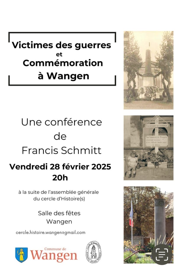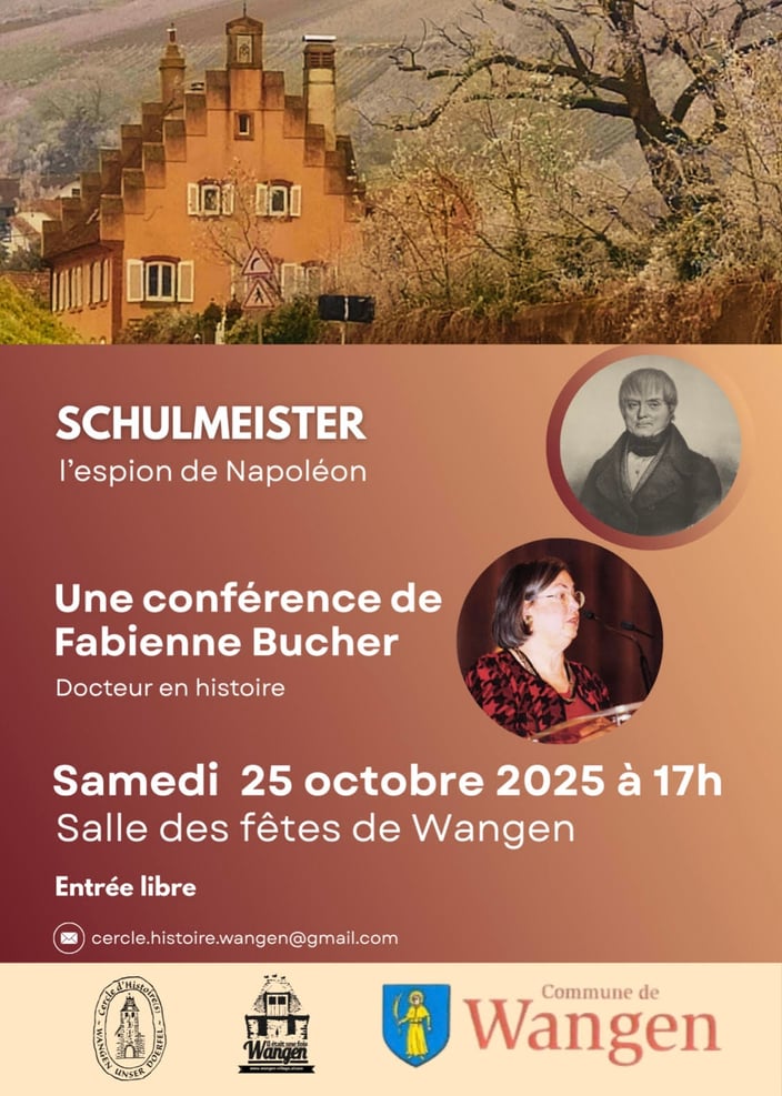 Le cercle d'Histoire(s) et la commune de Wangen invitent l'historienne Fabienne Bucher pour sa conférence ayant pour thème "Schulmeister, l'espion de l'empereur". Charles-Louis Schulmeister fut l’un des personnages les plus fascinants de la période napoléonienne. Contrebandier puis agent secret au service des armées de l’Empire, proche de l’Empereur lui-même, il eut une immense influence lors de batailles et d’autres moments décisifs de cette période. Fabienne Bucher, docteur en...
