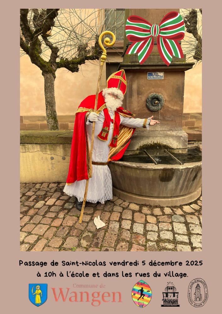 Le vendredi 5 décembre à 10 h, Saint Nicolas sera de passage à Wangen, d’abord dans la cour de l’école, puis dans les rues du village où il fera sa traditionnelle visite du village en compagnie du cercle d’Histoire(s). Sa présence tant attendue apportera joie et mannele aux enfants, qui auront l’occasion de le saluer et de partager avec lui, un moment chaleureux. Quant au redouté Père Fouettard, sa présence reste incertaine… Tout dépendra de la sagesse des enfants ! S’ils...