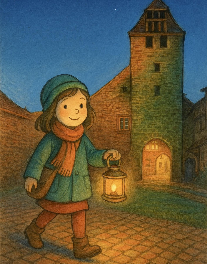Ce soir-là, la brume s’élevait d’un souffle léger, et le Niedertor semblait plus mystérieux que jamais. Lina s’approcha de la tour, posa sa main sur la pierre froide et chuchota :